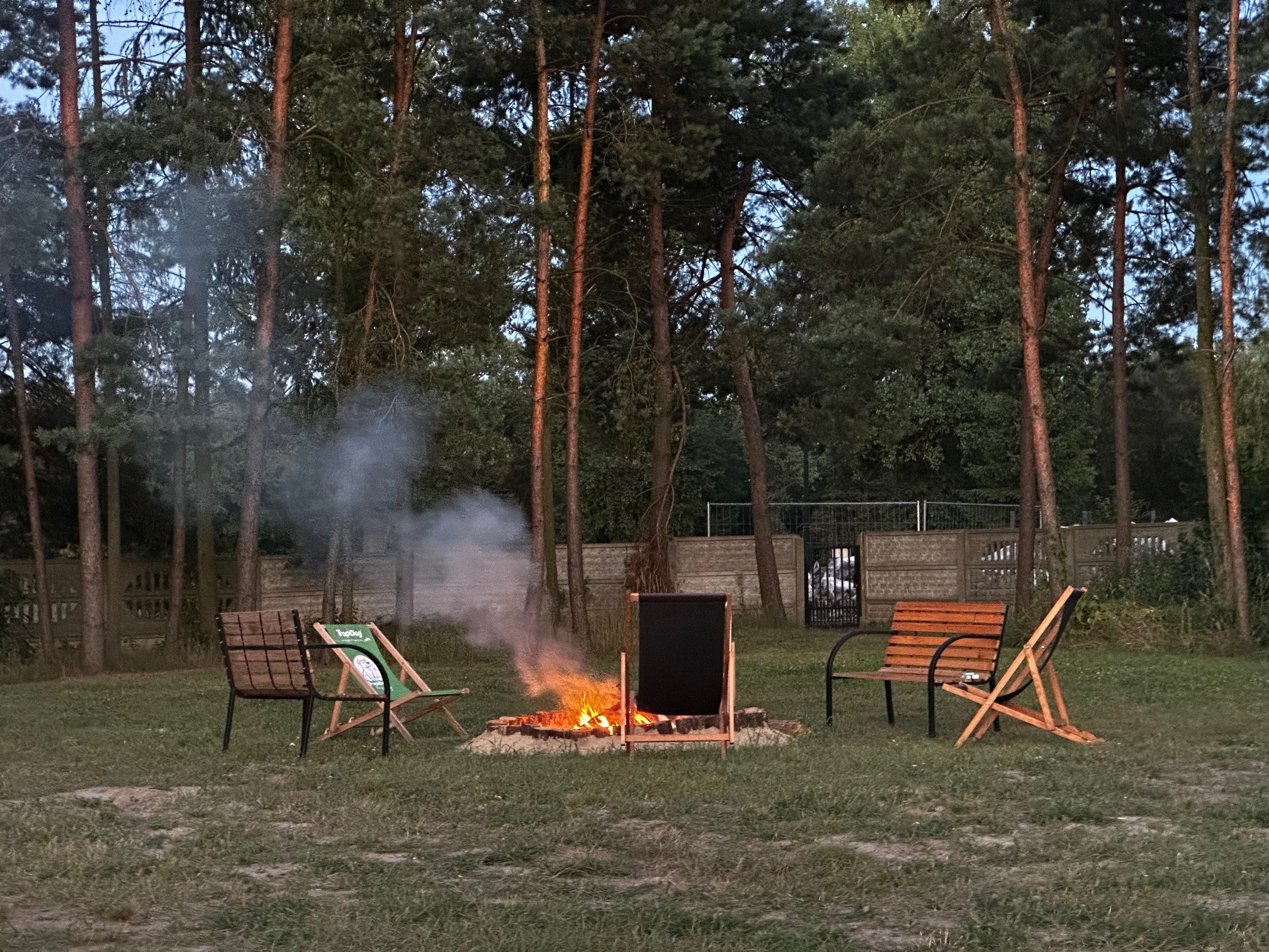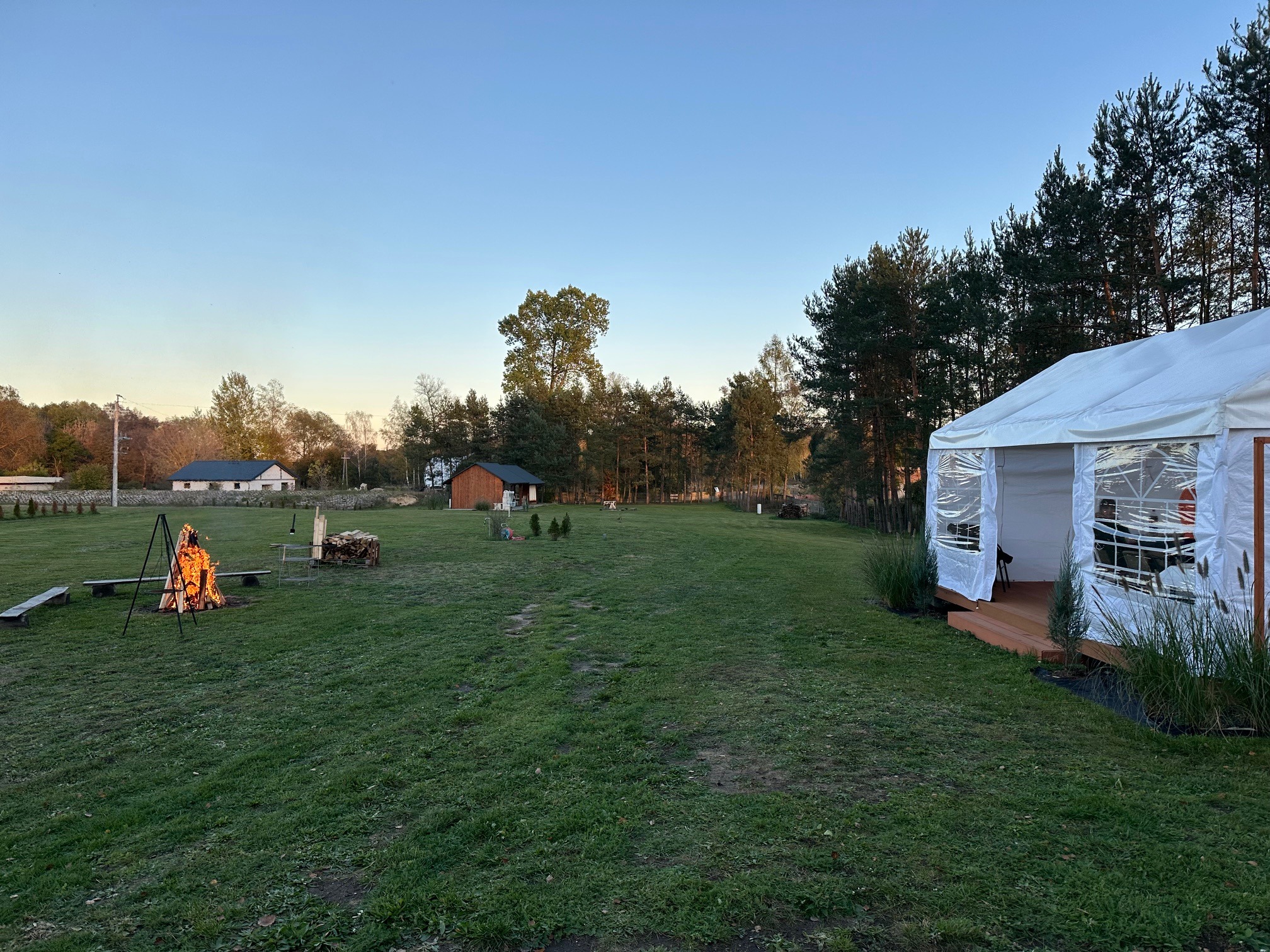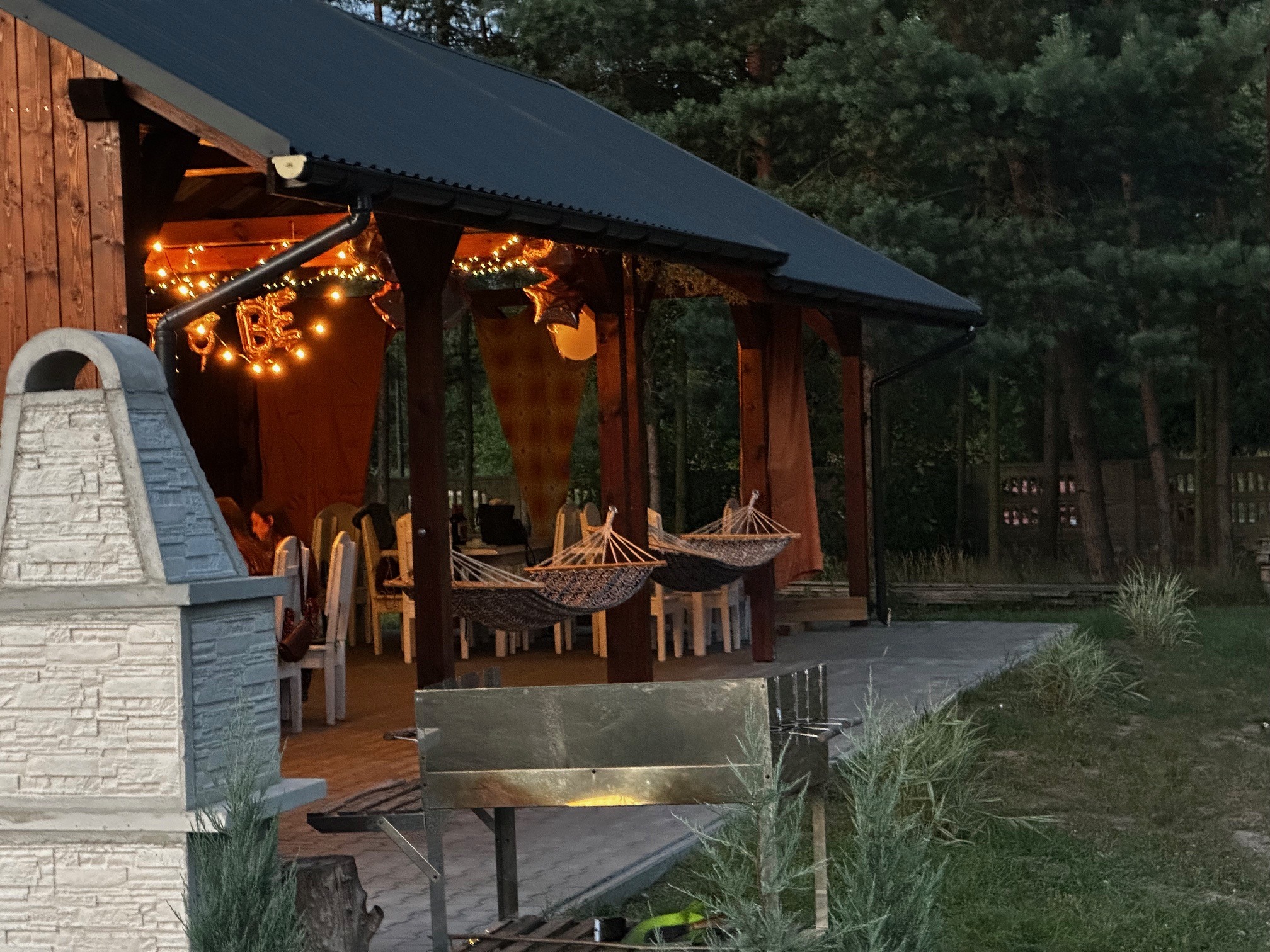- ogród z miejscem na ognisko i grill, altaną, namiotem i huśtawkami