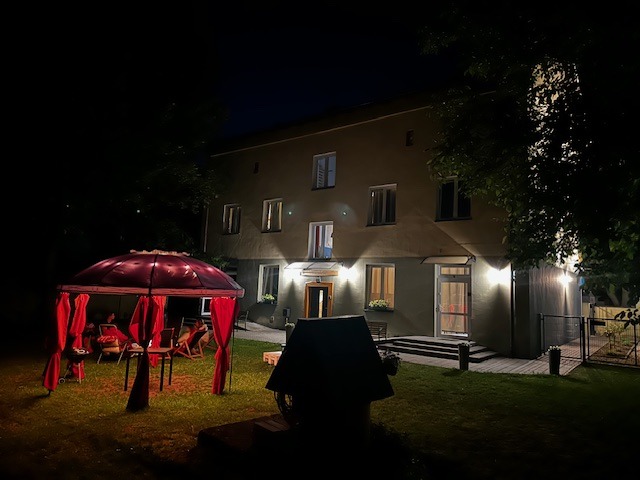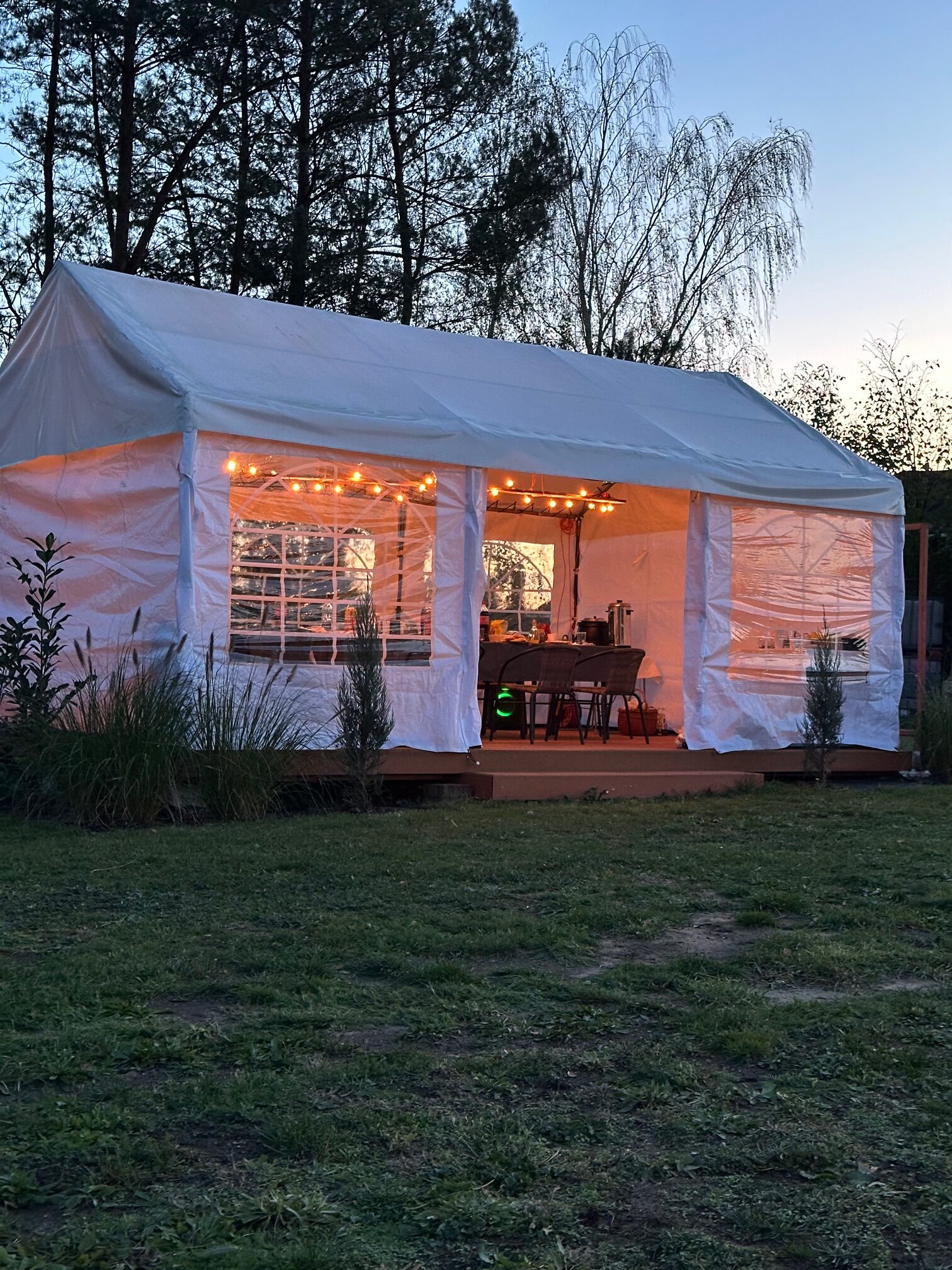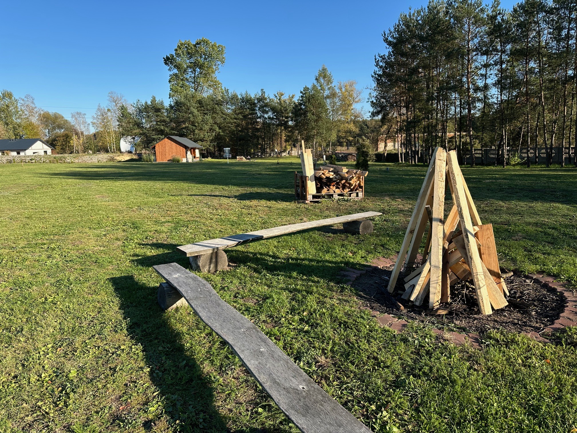 - ogród z miejscem na ognisko i grill, altaną, namiotem i huśtawkami
